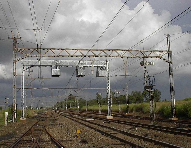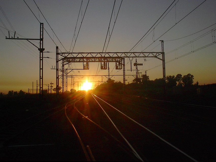 Close now to the end of semaphore signalling here. No trains in sight, but the new CTC gantry and one of the westbound (Up) starters are silhouetted by the rising sun at Arbor, 05h30, 6th January 2007.