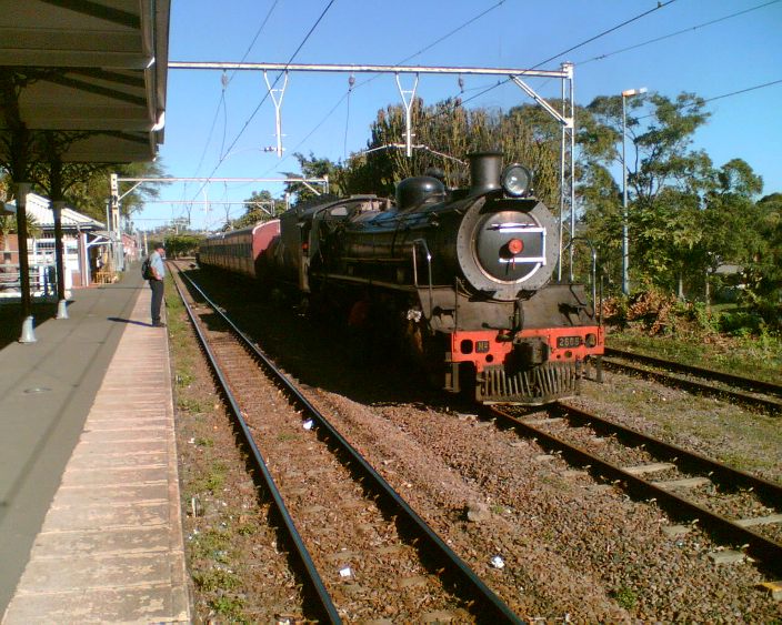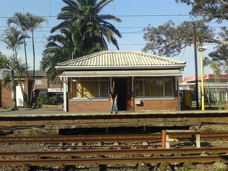 Bellair is probably the most interesting surviving semaphore locations in South Africa, with its classic station building, and wide variety of signal types. This station is on the Old Main Line from Durban to Pietermaritzburg in the heart of Durban suburbia, and still sees a fairly regular suburban service, although all goods traffic has now ceased. The track becomes single in the Malvern direction (towards Pietermaritzburg) but is double towards Rossburgh, the junction with the South Coast Line and the New Main Line. In this picture, you can see part of the station building, now a historic monument, with the signal box (a single level building on the platform) in the distance.