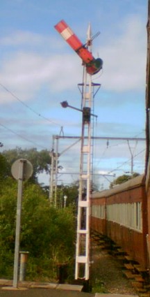 Our final type of signal is the Intermediate Home Signal (number 31), which is the first semaphore signal in the Rossburgh direction. The third shot is in evocative twilight. All three of these pictures by Greg Hart, who also contributed extensive information to these pages.