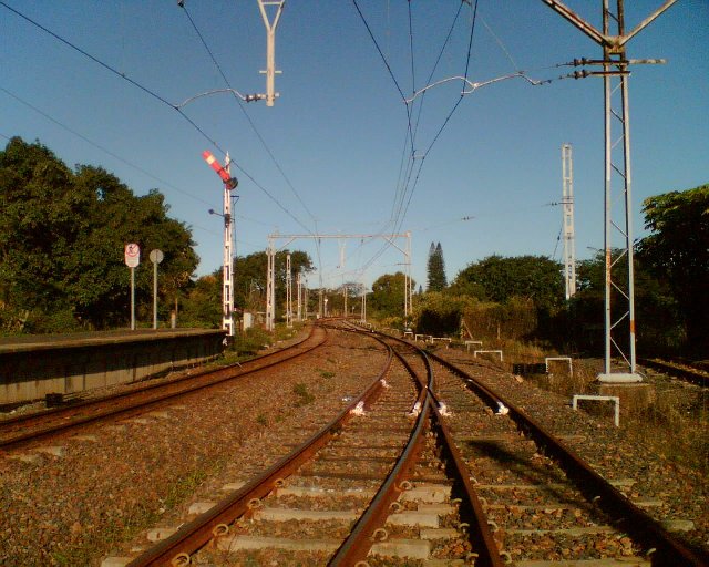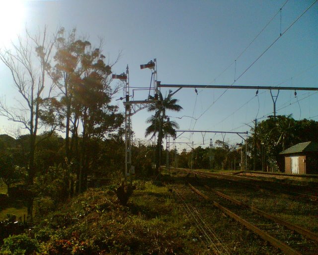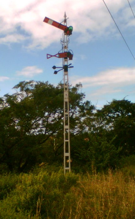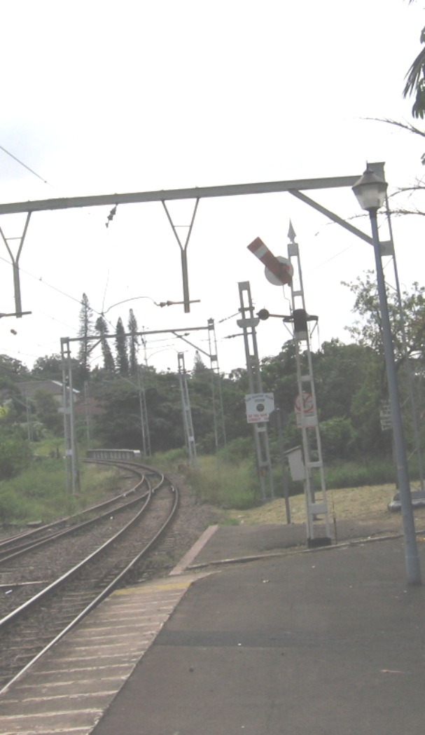Starting signals are only used in South Africa on double track sections. These two pictures show the starting signal (number 22) on the Rossburgh end of the station where there is double track. Pictures by Greg Hart.