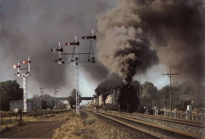 The legendary "Steel Kyalami" from De Aar to Kimberley was famous as a steam mainline until 1992, and also had semaphore signalling until the recent electrification in the early 2000s. However, the semaphores and steam are both gone now. Belmont was the junction for the branch line to Douglas, and had an impressive range of signals, seen in these two shots of unknown origin.