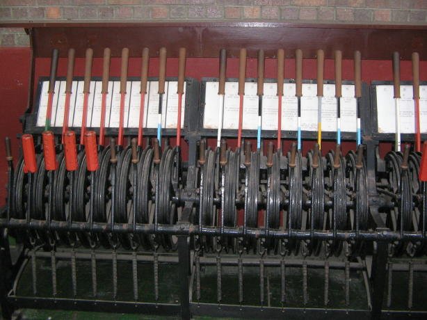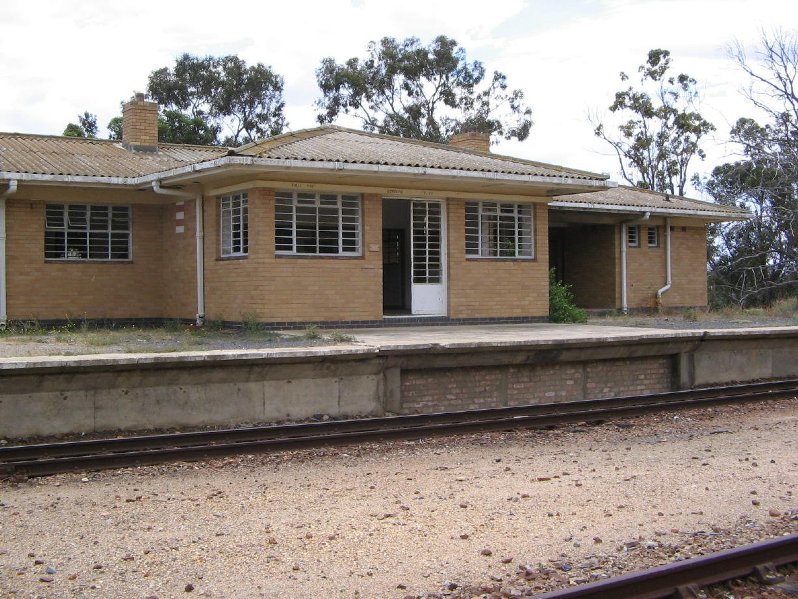 such area in South Africa. There were quite extensive goods yards for the agricultural traffic, and the station featured semaphore signals for many years, until the general run-down of the lines in the 1980s/90s. This picture shows the signalling area, with the area from where the wires emerged now bricked up.