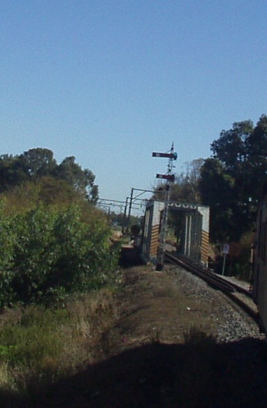 This is the nearest place to Cape Town to see semaphore signals. The station is about 35 kms from Cape Town and is the first stop after Eerste River junction on the line that takes electric suburban trains to Strand and freight trains (and some passenger specials) to Caledon and Bredasdorp. As with so many South African signalling installations, the signal box is simply a front room of the main station building, pictured here. This scene is typical of so many South African country stations of the past, just about all of them now closed. 16 levers control the signals and passing loop here. The section back to Eerste River is worked by track circuits, but there is token working to the next station, Firgrove.
