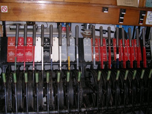 Thanks to Dylan Knott for this picture of the lever frame at Faure. You can click on the picture above to see a bigger version. You can see the 16 levers including outer home, main home and main to loop home signals in each direction, two facing points, two safety bars and a switching out lever. In addition, there are two shunt signals in the up direction and an advanced starter, which is in fact a color light signal allowing entrance into the track circuited section to Eerste River. Note the lever descriptions are in English and Afrikaans.