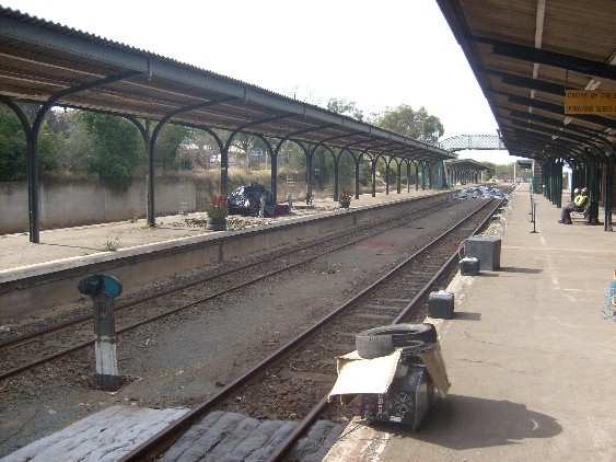 Grahamstown is an important small city with a university, and was on a once-active branch from Alicedale that continued to Port Alfred. There was a separate signal box and substantial signalling installation, but the only evidence of this now seems to be the portion of a former dwarf signal in this photo by Dylan Knott.