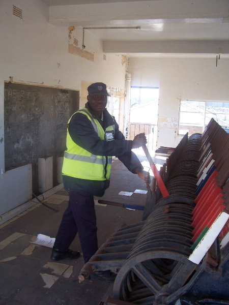 Hutchinson is on the main Cape Town to Johannesburg line, about halfway between Beaufort West and De Aar. It is the junction for the long branch to Calvinia and had a large, separate signal box. That section of line was converted to CTC and electrified in the early 1980s, but the lever frame looks reasonably intact in this March 2008 shot by Chris King.