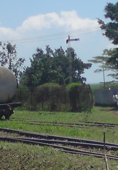Kisumu is the third city of Kenya and the terminus of a major branch from the Kenya-Uganda railway. Another line to Butere also terminates here. There are a few semaphore signals at the station in March 2011; this one protects a siding.