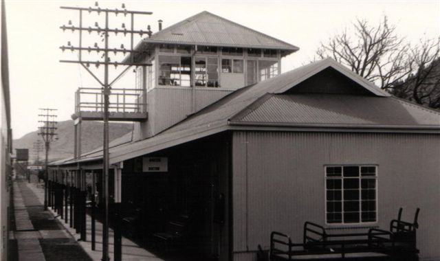 Moddepoort is on the Bloemfontein to Bethlehem line, a scenic section in the Eastern Free State that was one of steam's latter day haunts. It was the junction for the short branch to Ladybrand and had a frame with 48 levers, which I believe is still in existence although probably sees little use. This is a 1978 picture by Richard Niven of the signal box there. It is common in South Africa for the signal box to be part of the main station building, but unusual for it to be the upper level as here.