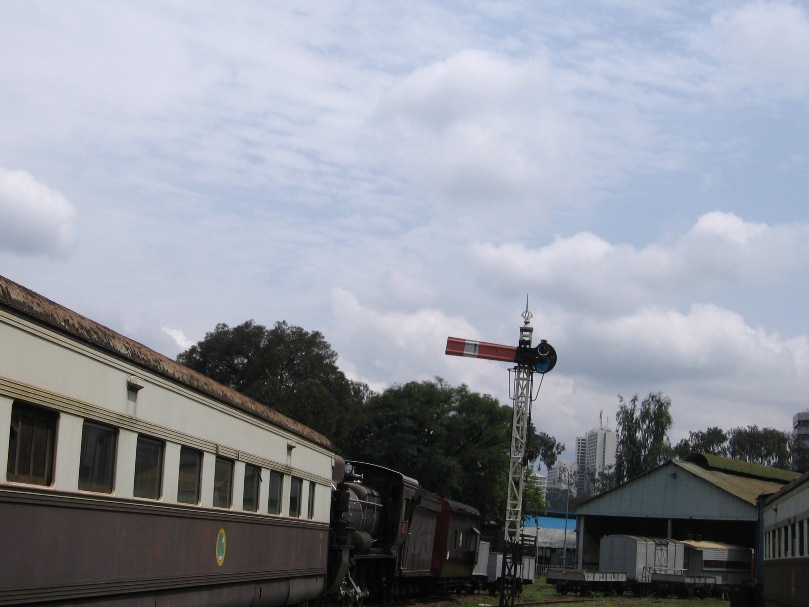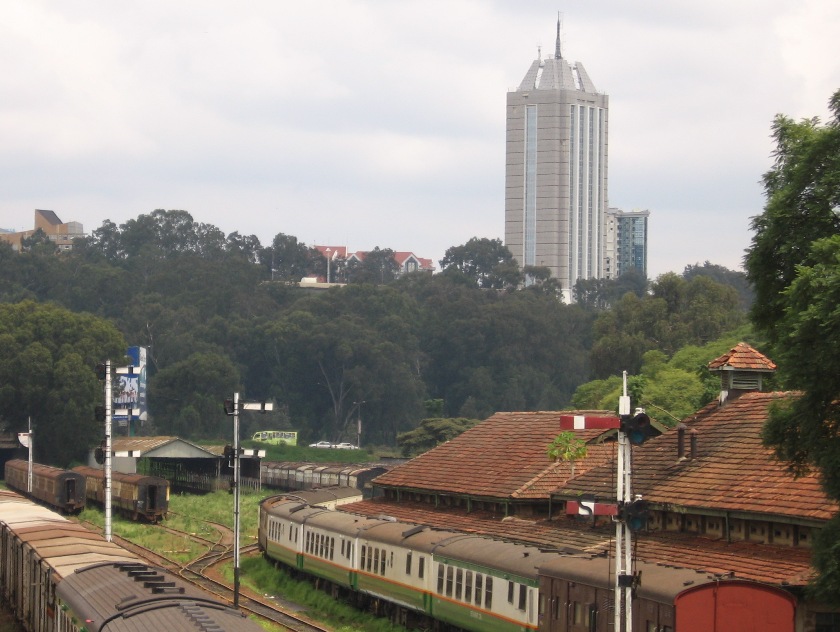 Nairobi is the capital of Kenya, a city actually created by the railway, as a supply depot was needed on the East Africa line from the coast at Mombassa to Uganda. It is now the leading city in East Africa, and retains an interesting railway legacy, with the railway museum seeing a recent upgrade. The station (entrance depicted here) still features extensive semaphore signalling at this point in time (June 2007).