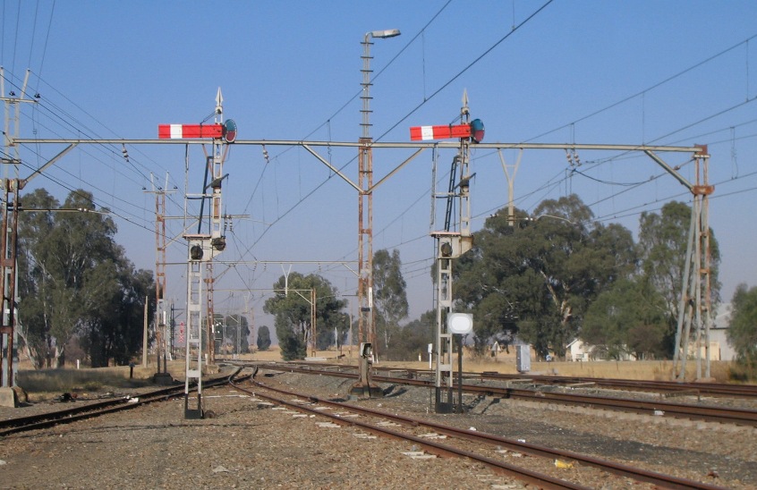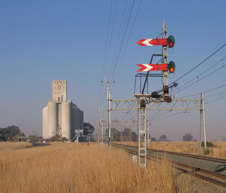 The outer home and distant signal for southbound trains approaching Rooiwal