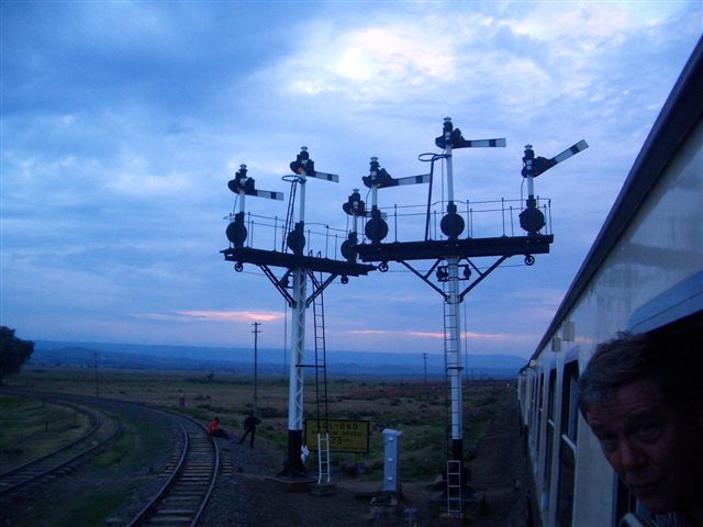 Here are two pictures by Richard Niven in 2005 somewhere on the Nairobi to Kisumu line in Kenya -somewhere in the Kenyan uplands, possibly even Uplands station. Note the impressive pair of junction signals.